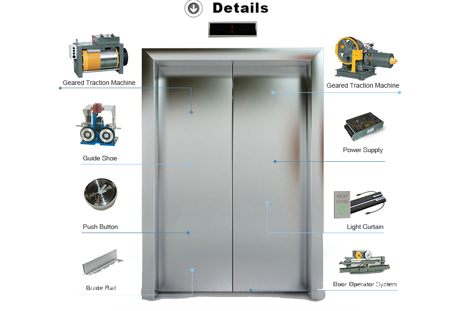 The COPs & LOPs comes with many designs & colour combinations which are in harmony with the car interiors. It includes Square/Round Push-Buttons with illuminat. LE. to provide you add. visual confirmation & a digital up/down arrow/LCD Display with Floor indication.
