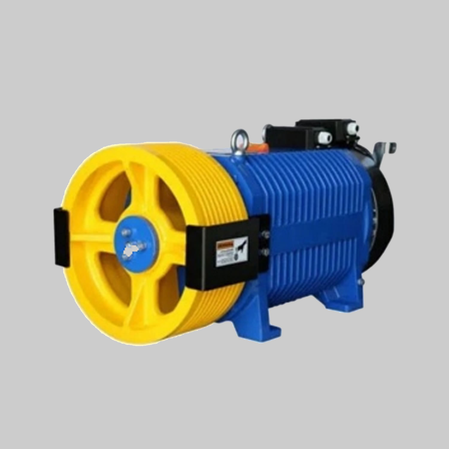 The traction sheave is directly connected to the traction motor’s sha[, and the rotation (speed) of the motor is sent to the traction sheave without any intermediary gearing